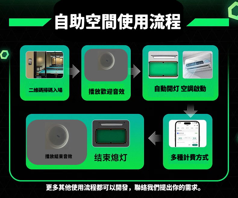 客戶只要通過網站預約場地,即可全自動提供進場,實現無人值守能安心經營